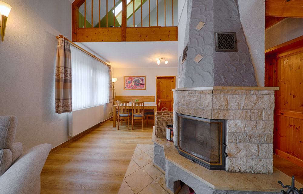 ✓ 1 Wohnraum mit TV, Stereoanlage, Telefon, Kamin und Terrasse